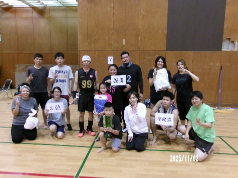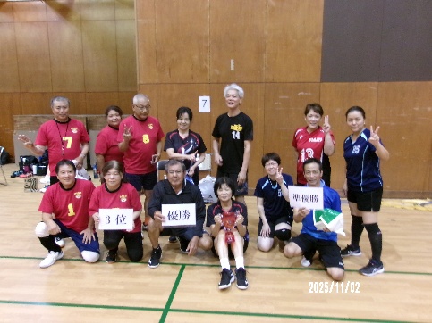 ミニバレーのネットの高さ155cmにちなみ、選手年齢合計155歳を区切りとしたユニークな大会で会員相互の親睦と健康増進を目的に去る11月2日(日)西崎総合体育館で開催しました。